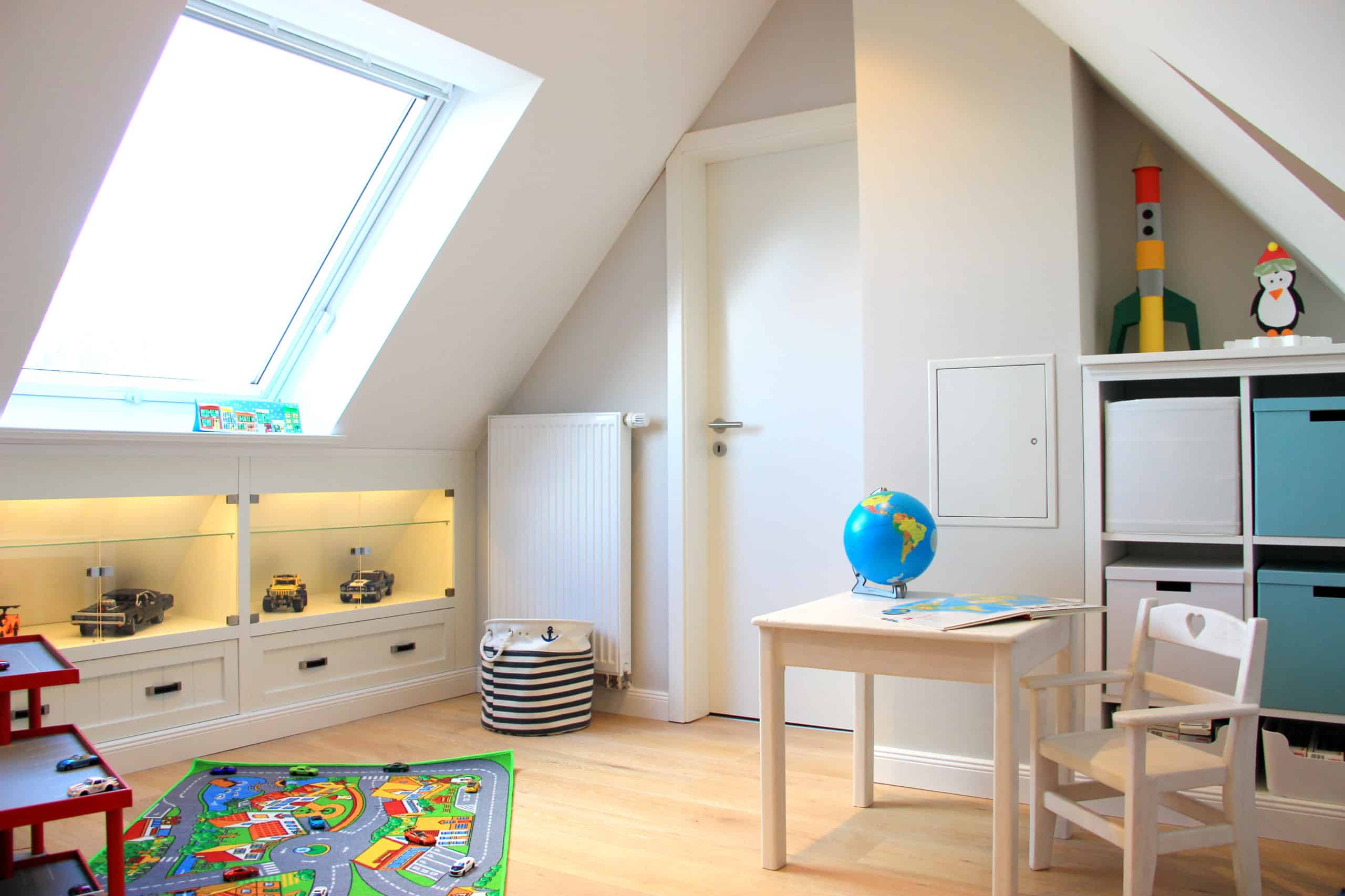Mit dem Wunsch nach mehr Raum für die Kinder und das eigene Hobby, sollte der Dachboden wohnlich ausgebaut werden. Dabei habe ich bei der Raumgestaltung, Einrichtung und Dekoration beraten und die Umgestaltung der neu ausgebauten Räume übernommen.